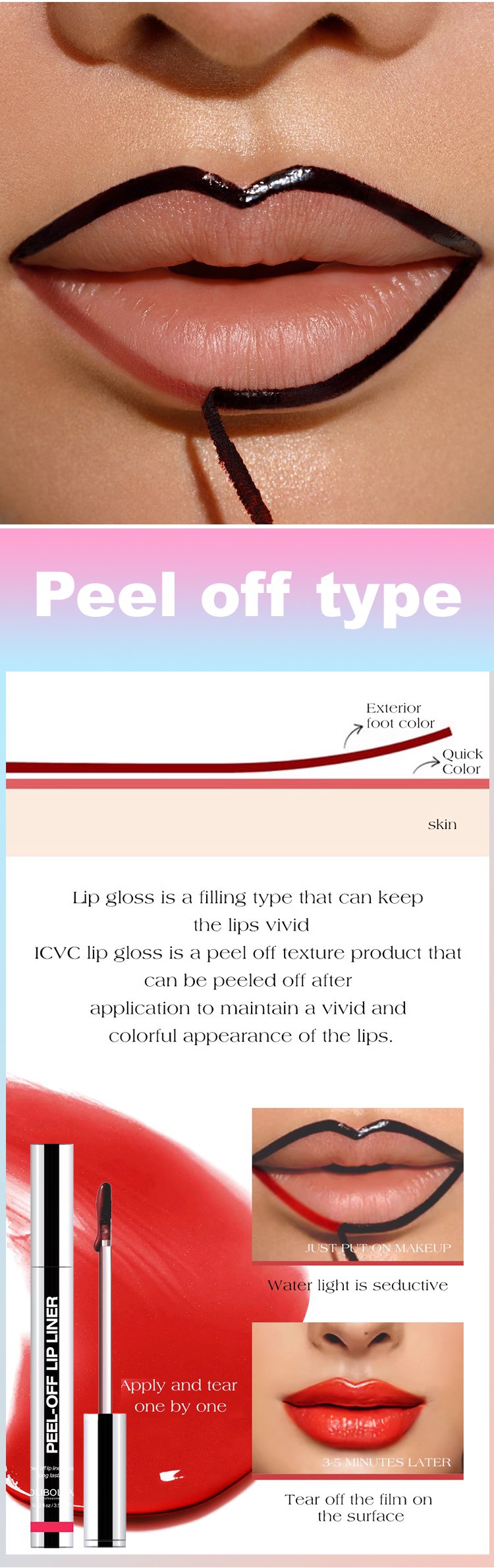 Peel- Off Lip Liner Lipstain Lasts all day